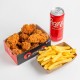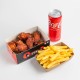 6 Hot Wings, 6 Filet Bites, 2x Pommes frites, 4 Dip nach Wahl.